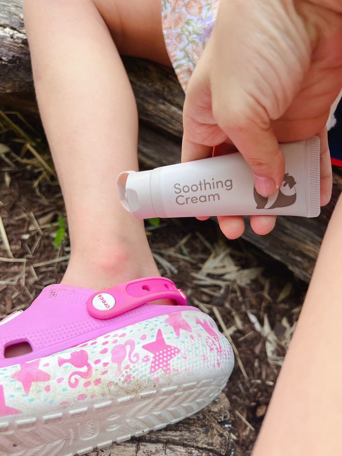 在被蚊蟲叮咬後,我會使用「秀秀霜」舒緩不適