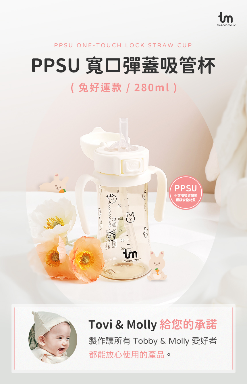 【tovi and molly】PPSU寬口彈蓋吸管杯_奶茶兔好運280ml,親子良品 | 媽媽育兒的好朋友! ((華人第一親子用品嚴選網 ))