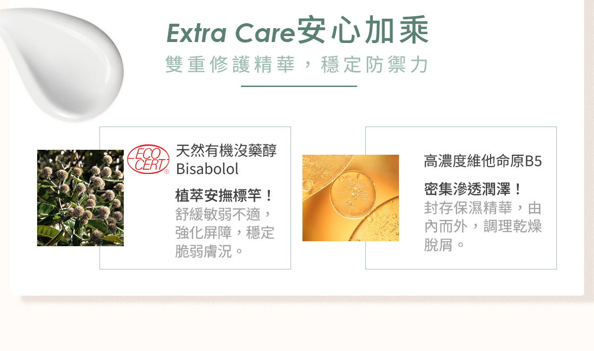 ➤ 有機認證沒藥醇,瞬效穩定肌表燥動